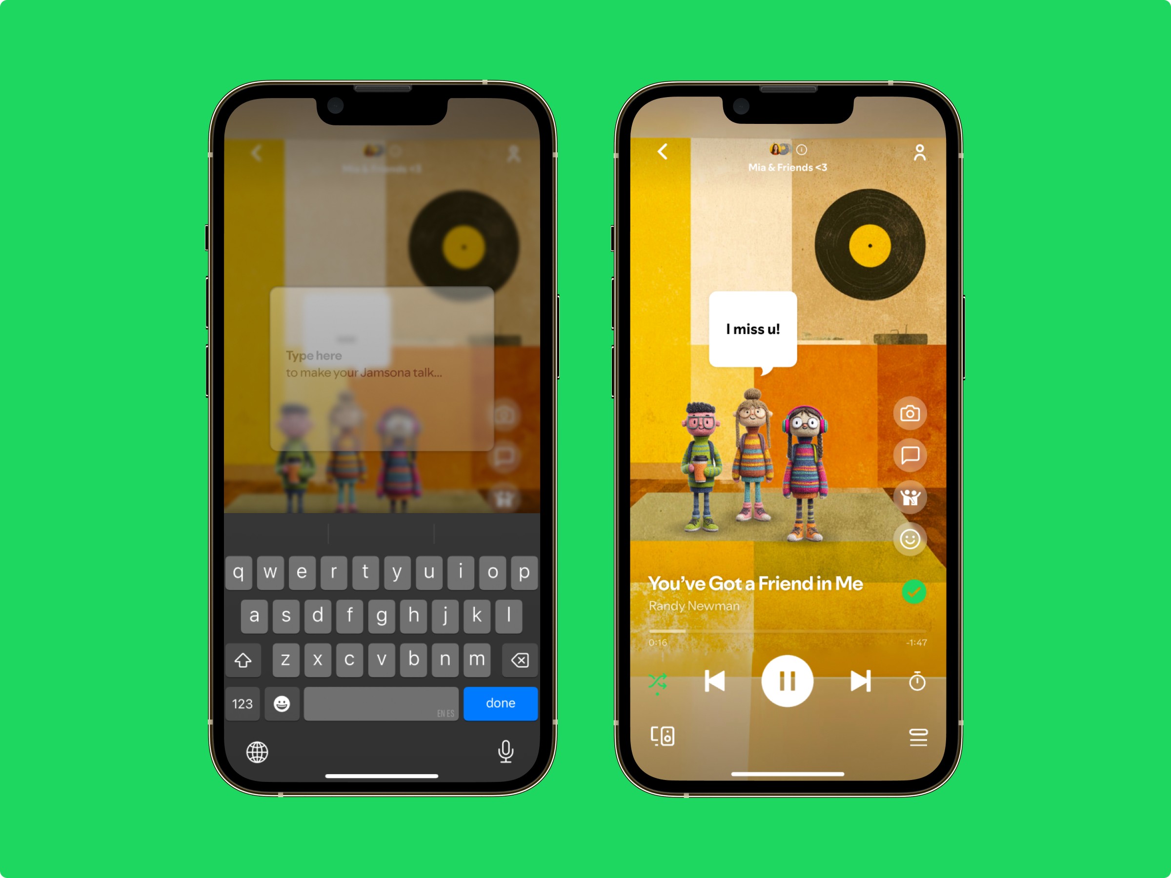 Messages typed through the Jamspace right-side button appear as Jamoji speech bubbles, creating playful remote interactions.